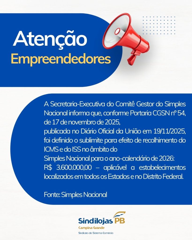A Secretaria-Executiva do Comitê Gestor do Simples Nacional publicou a Portaria CGSN nº 54/2025, e temos novidade importante para 2026!