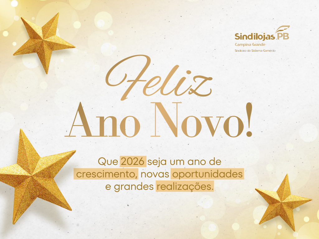 Que o novo ano traga mais oportunidades, crescimento, prosperidade e confiança para todos nós. O Sindilojas segue ao lado do comércio, trabalhando pelo fortalecimento do varejo e pelo desenvolvimento dos nossos negócios.